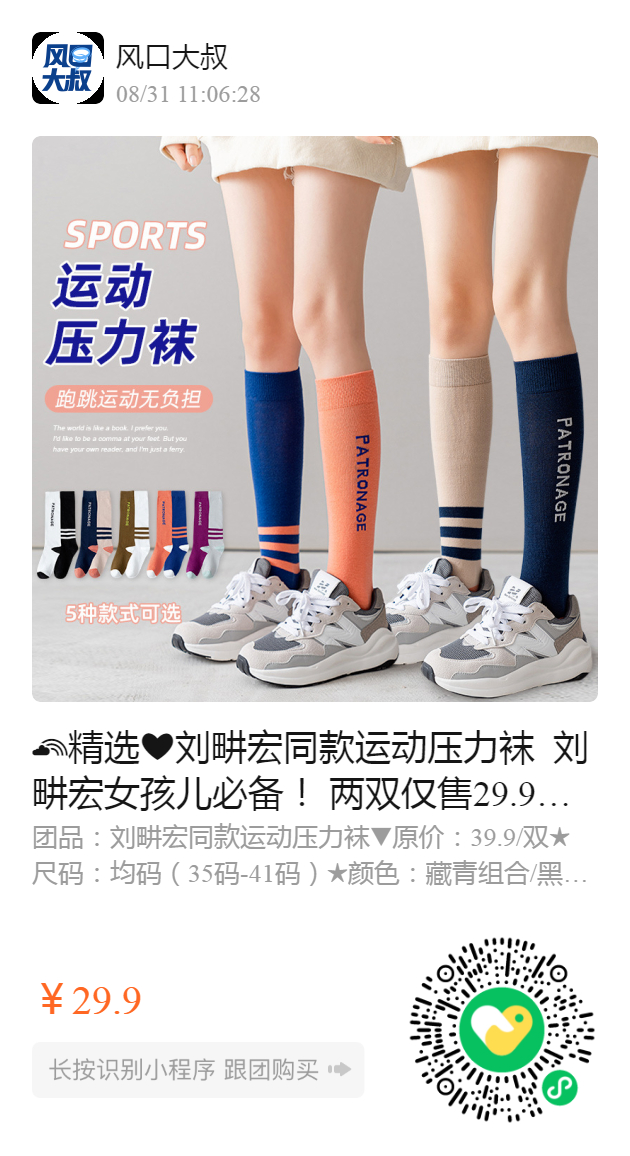 精选️刘畊宏同款运动压力袜 刘畊宏女孩儿必备! 两双仅售29.9 跳绳跑步运动小腿鸳鸯压力袜 通过给予肌肉支撑,在一定程度上 可以减少小腿肌肉在跑步全程中的震颤, 从而可以降低肌肉微细结构损伤和疲劳程度。 服饰鞋包 刘畊宏同款运动压力袜