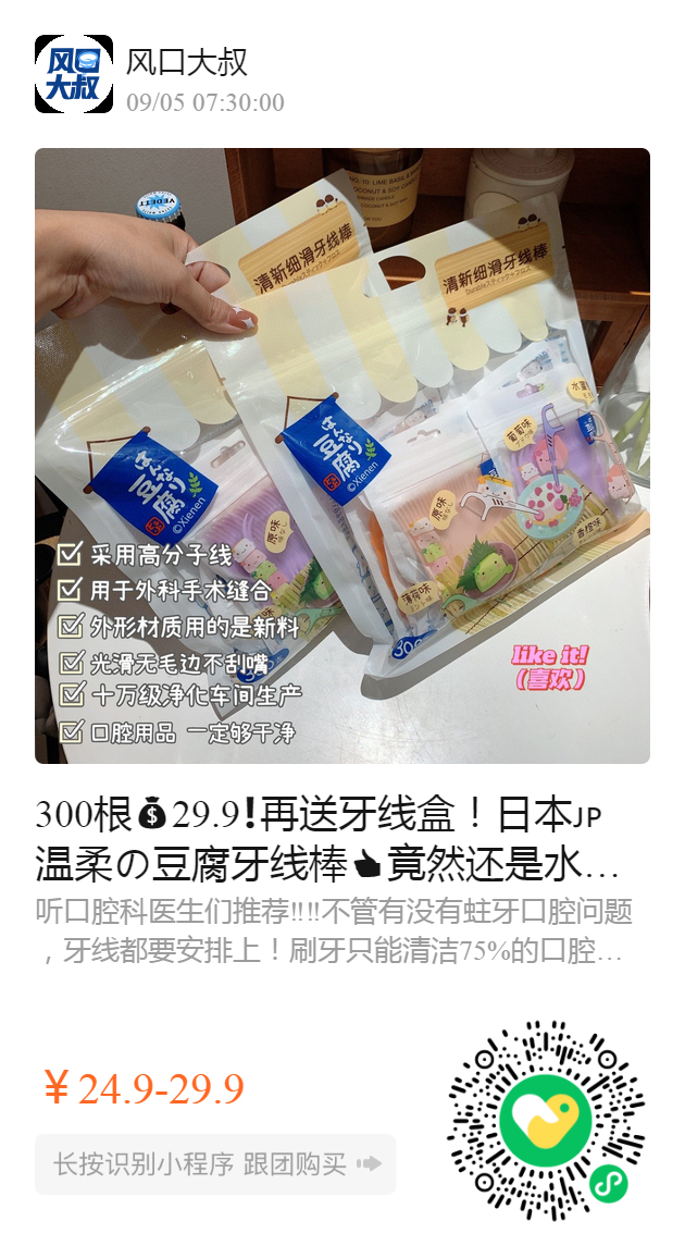 300根29.9❗️再送牙线盒!日本温柔の豆腐牙线棒竟然还是水果味儿,用完口气清新了🥰用一次就爱上!全家一起用!