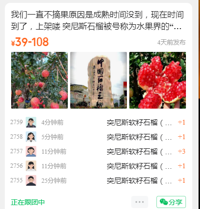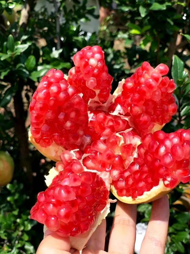 我们一直不摘果原因是成熟时间没到,现在时间到了,上架喽 突尼斯石榴被号称为水果界的“雅诗兰黛”,它具有花青素和红石榴多酚两大抗氧化成分。 简直就是爱美女生的营养圣品 不像硬籽那般磕牙,可以让人大口大口吃