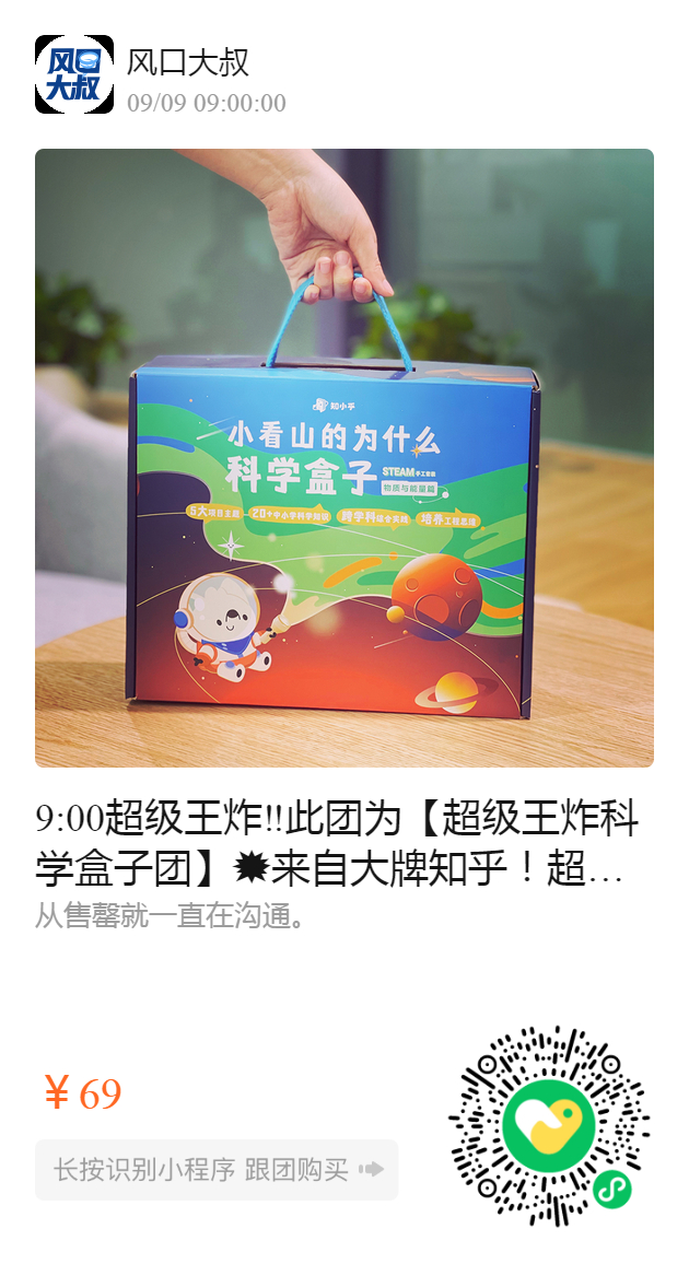9:00超级王炸‼️此团为【超级王炸科学盒子团】💥来自大牌知乎!超级羊毛!(预售9月30日)