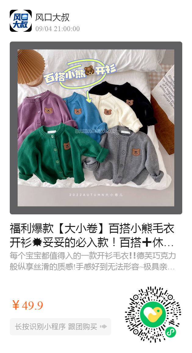 福利爆款【大小卷】百搭小熊毛衣开衫💥妥妥的必入款! 百搭➕休闲➕舒适~每个颜色都想带回家! 软软糯糯的面料工艺都是杠杠的! 开学季必备!价格还不贵,妈妈们闭眼入!