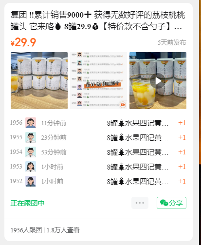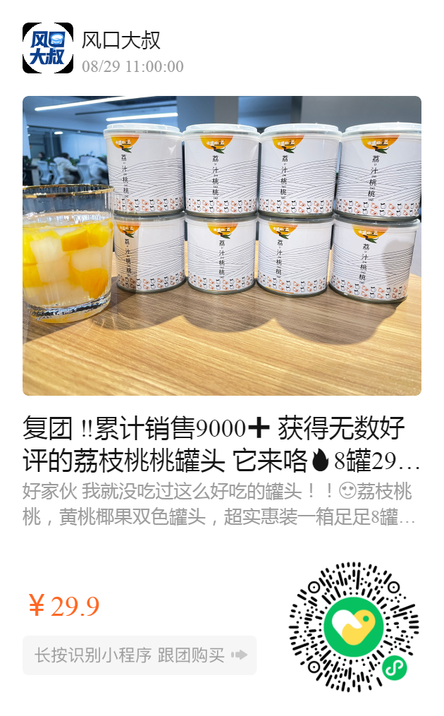 复团 ‼️累计销售9000➕ 获得无数好评的荔枝桃桃罐头 它来咯 8罐29.9【特价款不含勺子】我就没吃过这么好吃的罐头6小时的快速锁鲜 让新鲜荔枝🍹、黄桃🍑、椰果🥥和梨🍐的甜味无处遁逃, 荔枝风味 双色果pro 一箱足足8罐🥫 ,休闲常备零食,火锅必备伴侣