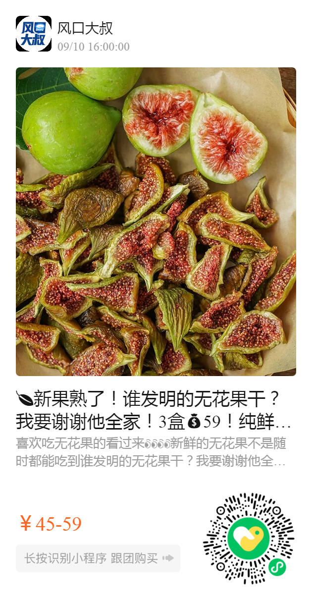 新果熟了!谁发明的无花果干?我要谢谢他全家!3盒59!纯鲜果无添加烘干!打开口感新世界「真·女神级水果」