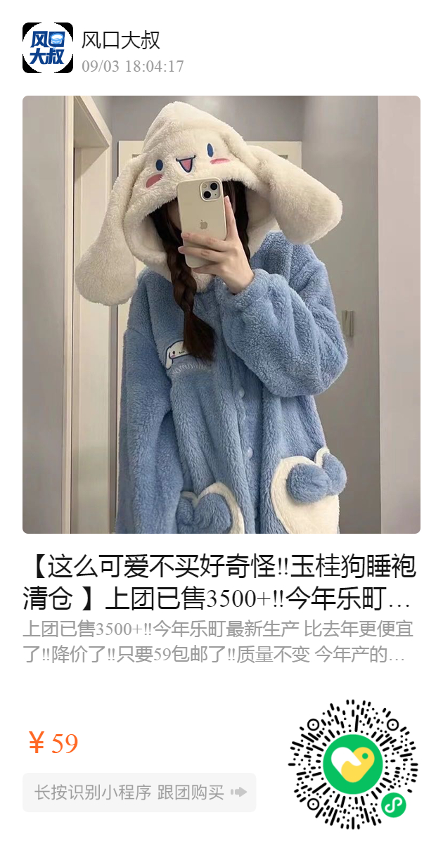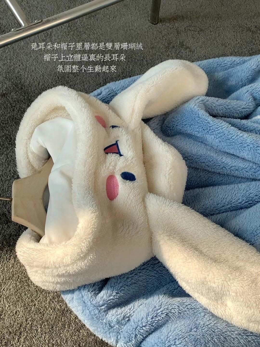 【这么可爱不买好奇怪‼️玉桂狗睡袍清仓 】上团已售3500+‼️今年乐町最新生产 比去年更便宜了‼️降价了‼️原厂出品 ✅️ 厚实珊瑚绒✅萌炸兔耳朵 帽子是加厚磨毛✅触感柔软亲肤 ✅小云朵口袋真的超治愈了