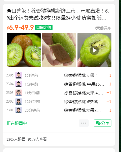 💥口碑级!徐香猕猴桃新鲜上市,产地直发!6.9出个运费先试吃6枚❗️❗️限量24小时