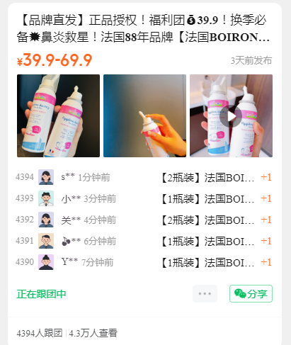【品牌直发】正品授权!福利团39.9!换季必备💥鼻炎救星!法国88年品牌【法国BOIRON宝弘生理盐水鼻喷】法国人手一瓶!