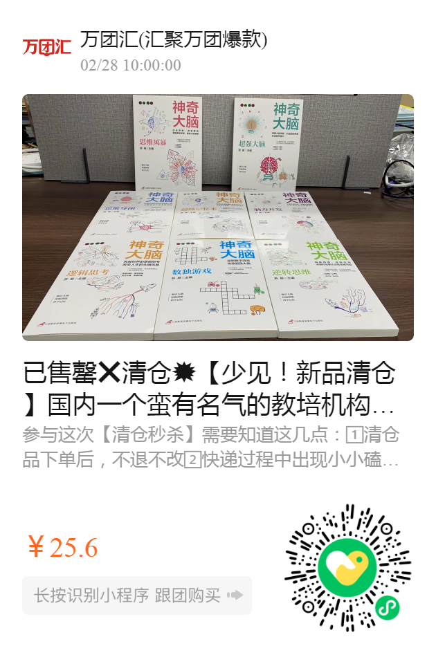 国内一个蛮有名气的教培机构定制了一批思维书,因为一些特殊原因,这家机构暂停了线下培训。这批已经付过定金的书,也不打算要了,才得以此团出现‼️