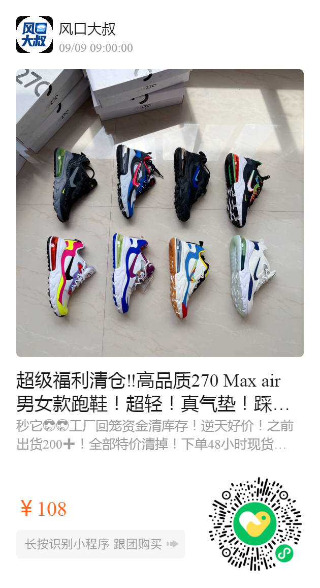 超级福利清仓‼️高品质270 Max air男女款跑鞋!超轻!真气垫!踩屎感!柜上1199! 之前出货价都在200+!今天开团无敌好价‼️ 去年我们卖出去反馈超级好!我自己也留了一双穿,今天工厂给了个无底线清仓价! 这波卖完收工不补货了……需要的赶紧跟上! 最后一批库存️️抓紧拍!!