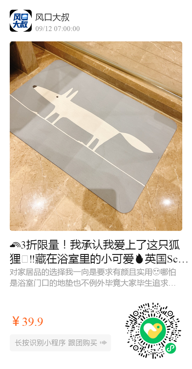 3折限量!我承认我爱上了这只狐狸🦊‼️藏在浴室里的小可爱英国Scion新款硅藻泥浴室吸水地垫! 🦊 Mr.Fox狐狸先生,让出浴不再湿漉漉 双面防滑,速吸速干,赤脚踩上超柔超舒服httd 五色可选,总有一款适合你的家~ 旗舰店99元,团购39.9!