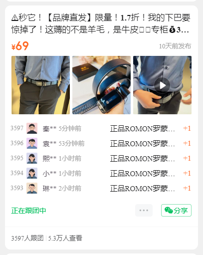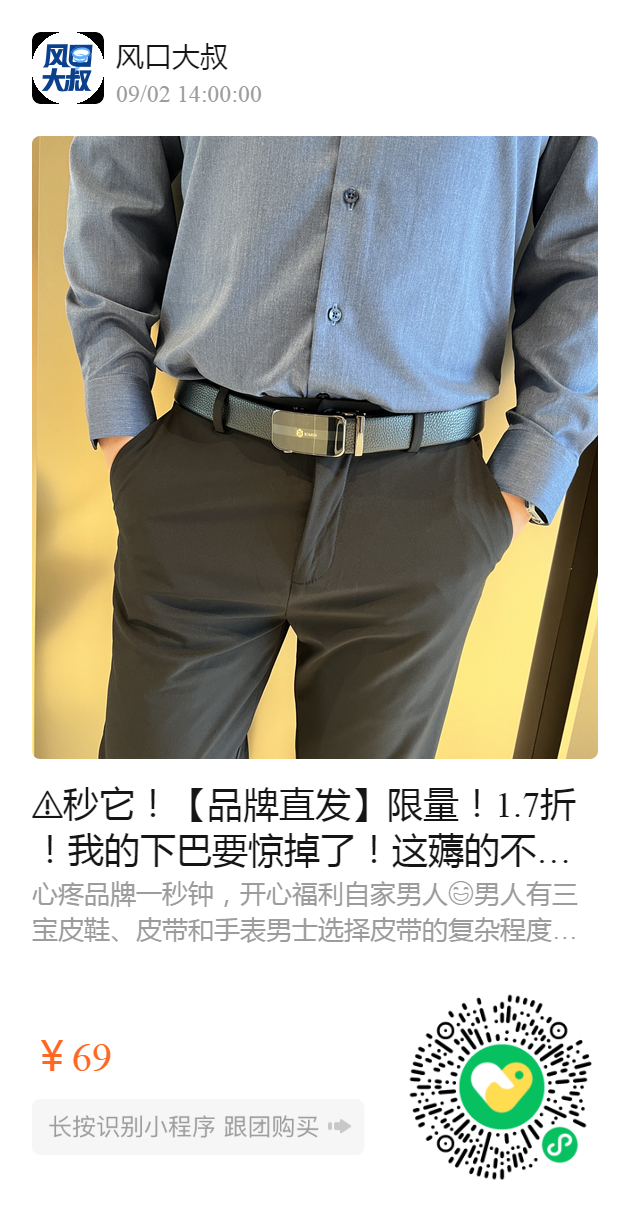 ️秒它!【品牌直发】限量!1.7折!我的下巴要惊掉了!这薅的不是羊毛,是牛皮🤣❗专柜399,团购69!老爷们的大福利❗!【ROMON罗蒙】男士简约大气皮带!