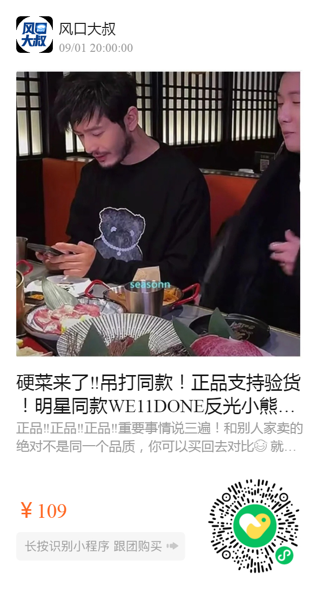硬菜来了‼️吊打同款!️正品支持验货!明星同款WE11DONE反光小熊情侣加厚长袖卫衣T恤~