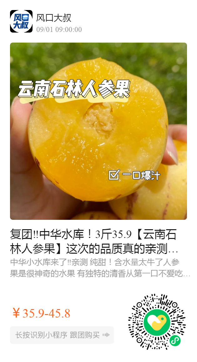 复团‼️中华水库!3斤35.9【云南石林人参果】这次的品质真的亲测绝🫡肉香皮薄,饱满细嫩 入口即化🤞细腻无渣 圆果的黄肉 口感让人惊喜 生津止渴还能缓解三高💖糖尿病人也可以吃 被誉为保健水果无籽无核可带皮吃💕可以称为最最省事的水果