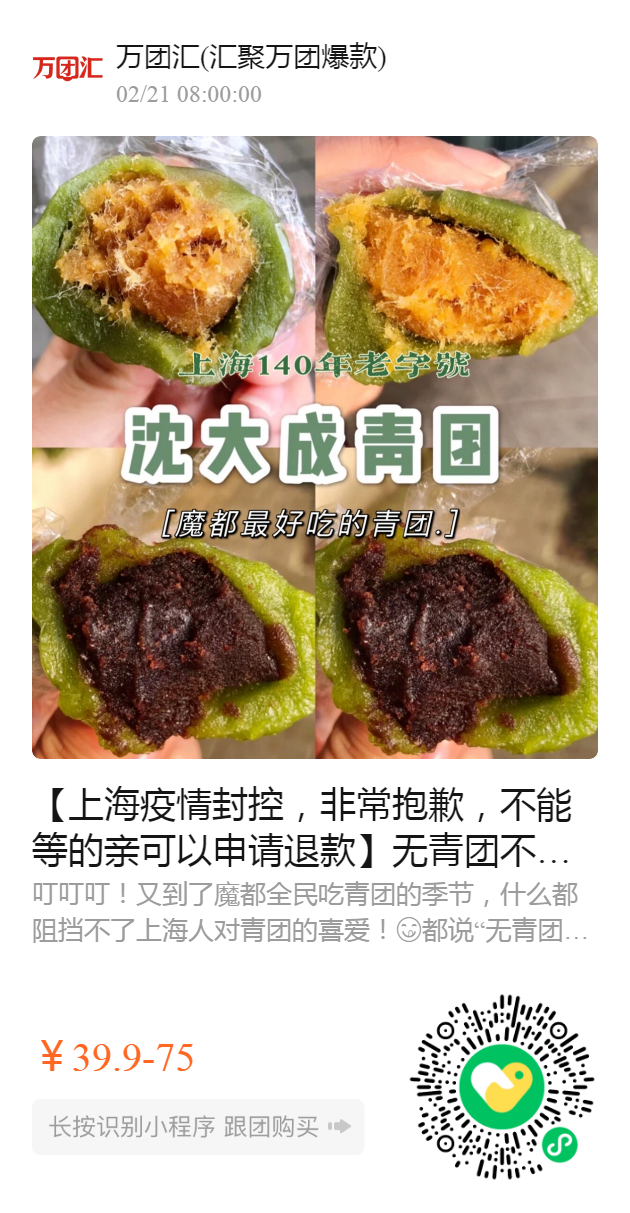 【上海疫情封控,非常抱歉,不能等的亲可以申请退款】无青团不春天【魔都最好吃的沈大成青团!不用排长队也能吃到了~】清明时节必吃的青团,最正宗的上海青团,咬一口就是江南春天的味道!