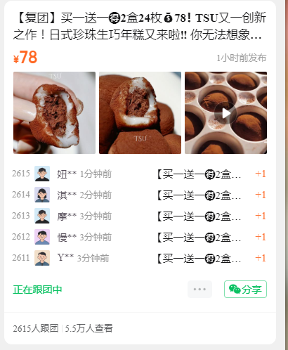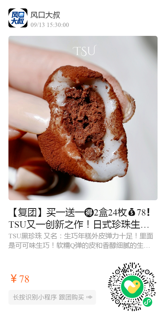 【复团】买一送一️2盒24枚78❗️ TSU又一创新之作!日式珍珠生巧年糕又来啦‼️ 你无法想象的奇妙口感!尝过TSU半熟芝士的朋友都来追着要的黑珍珠生巧! 软糯好吃不甜腻,加冰袋发货!