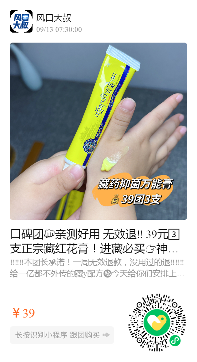 口碑团亲测好用 无效退‼️ 39元3️⃣支正宗藏红花膏!进藏必买神奇的抑菌万能膏! 一周见效❗️专治各种皮肤问题,没有它治不了,只有你想不到! 一抹渗透🔹迅速缓解🔹抑菌率高🔹一支在手皮肤问题克星,解决一切疑难杂症! 强烈推荐️亲测管用✅一周见效