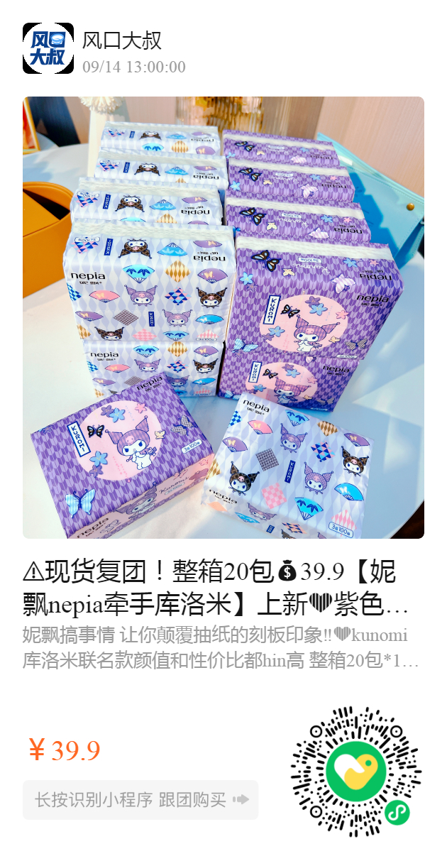 ️现货复团!整箱20包39.9【妮飘nepia牵手库洛米】上新紫色库洛米hin可爱 ‼️ 🌿原生木浆无荧光剂,100抽*3层加厚,湿纸也不易破,随身携带也是一道风景