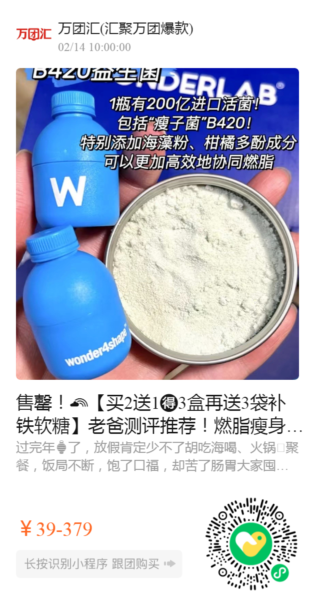 售罄!【买2送1️3盒再送3袋补铁软糖】老爸测评推荐!燃脂瘦身“瘦子菌”【新品首发】再也不用被帕梅拉支配啦‼️wonderlab 新品B420益生菌,含有200亿活菌和B420瘦子菌, 不添加蔗糖乳糖 ,益生菌🧬搭配益生元 !