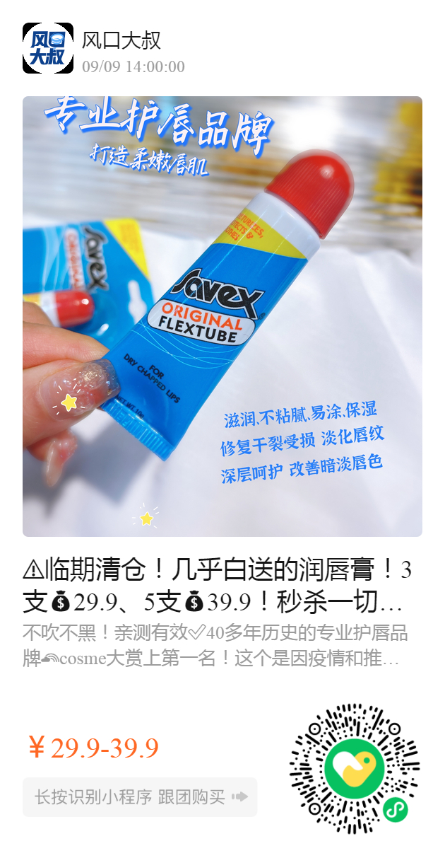 ️临期清仓!几乎白送的润唇膏!3支29.9、5支39.9!秒杀一切润唇膏,唇膏界的扛把子【美国savex喜微氏润唇膏10g】
