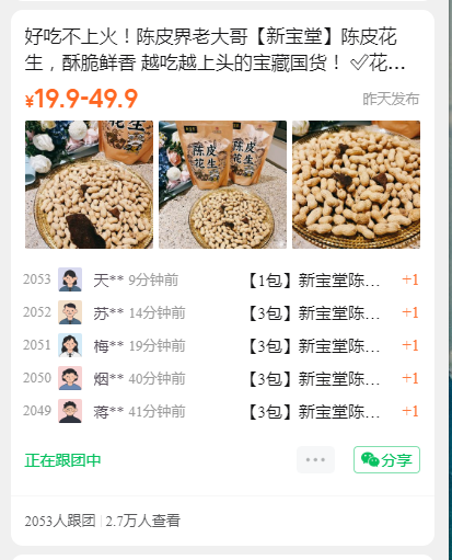 开 团 数:2053