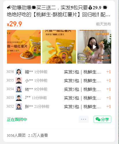 劲爆劲爆💥买三送二,实发5包只要29.9 💥绝绝好吃的【桃鲜生·酥脆红薯片】回归啦❗ 配料只有鲜红薯、白砂糖、食用植物油 添加剂️防腐剂 选用烟薯25号薯芯制作,一级红薯片 香❗️甜❗️酥❗️脆❗️ 一片接一片,根本停不下来了😋