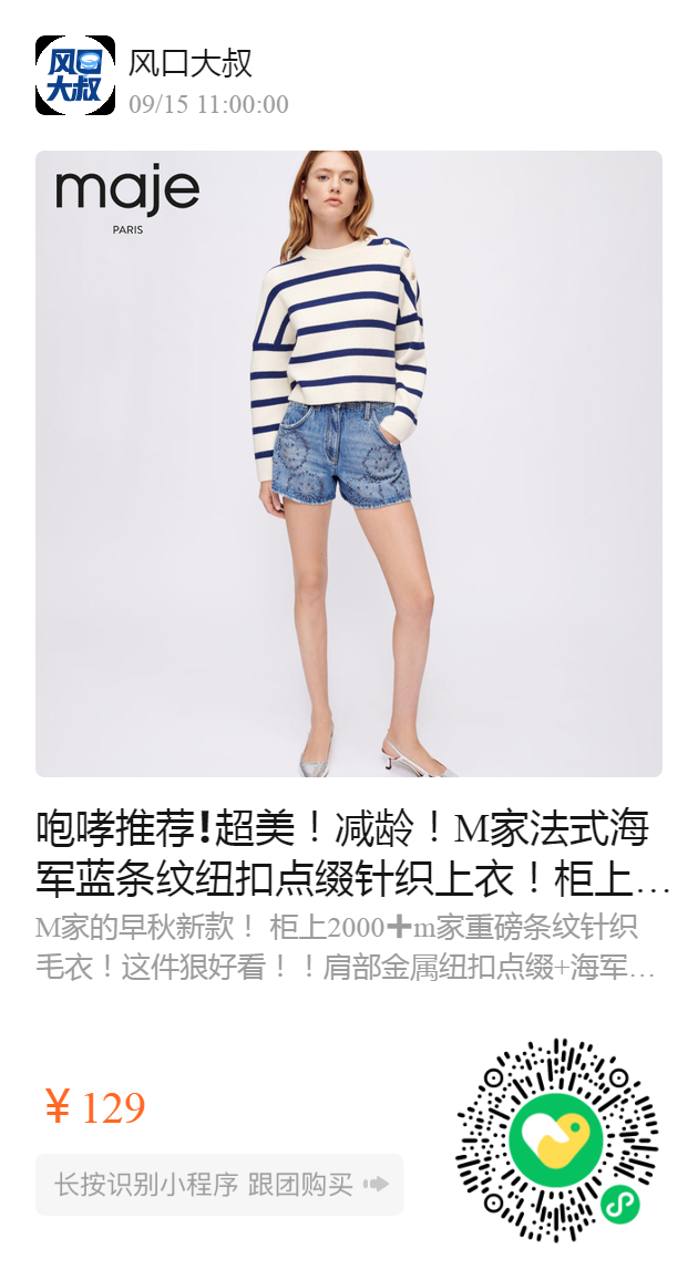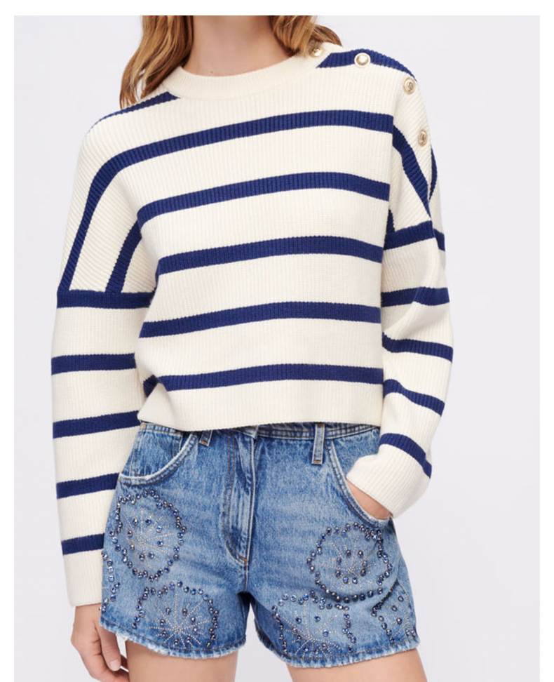 咆哮推荐❗️超美!减龄!M家法式海军蓝条纹纽扣点缀针织上衣!柜上2000➕!一线外贸工厂出货️品质完全PK代购!