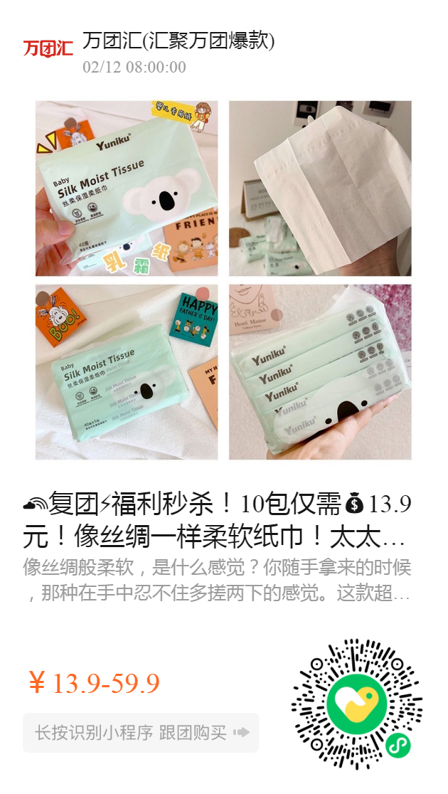 复团️福利秒杀!10包仅需13.9元!像丝绸一样柔软纸巾!太太太好用了!【Yuniku优尼可 丝柔乳霜柔纸巾】中科大研发,比婴儿肌还嫩滑的柔巾纸,超级细腻丨🌬柔软亲肤,🌼敏感肌的福音,一次就让你爱不释手!另有超值整箱50包装,旗舰店79.9,我们团59.9!
