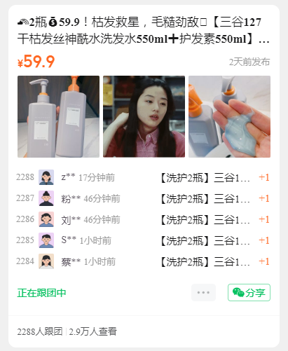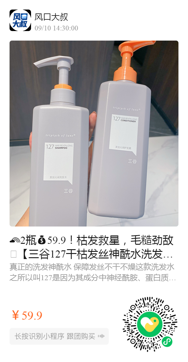 2瓶59.9!枯发救星,毛糙劲敌🚿【三谷127干枯发丝神酰水洗发水550ml➕护发素550ml】正品带防伪!
