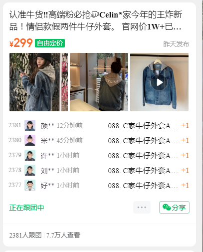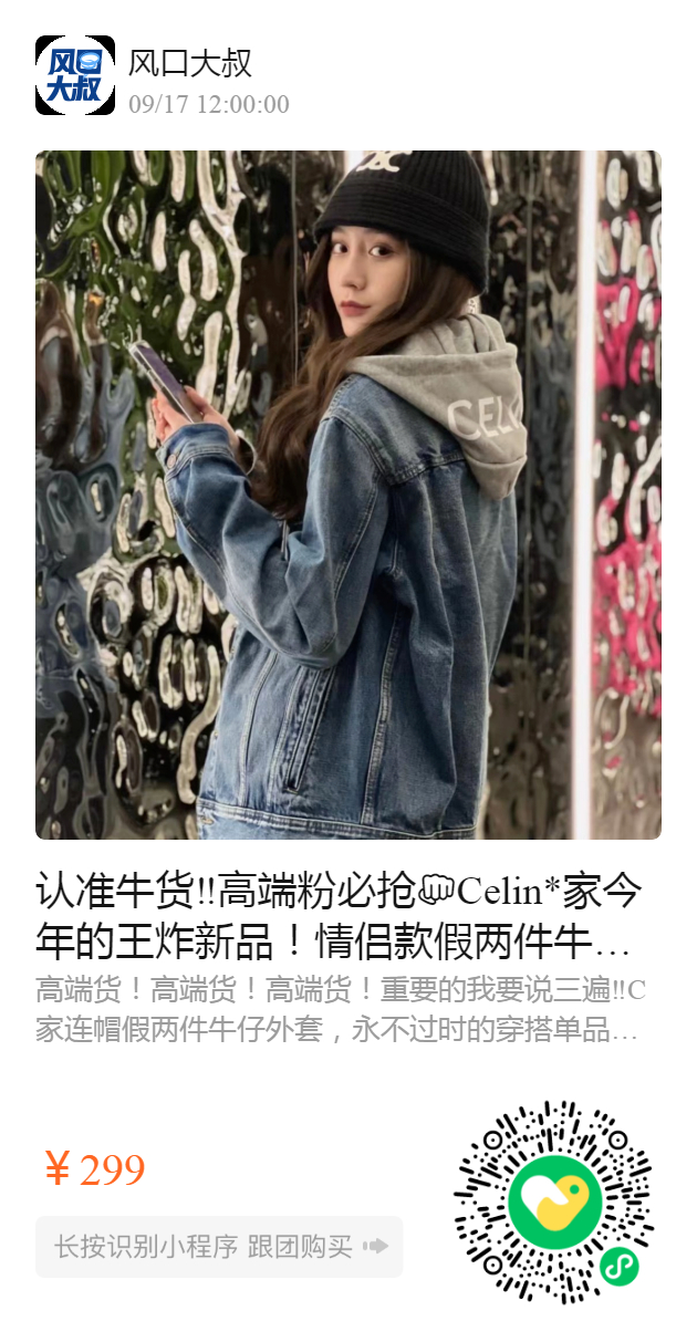 认准牛货‼️高端粉必抢Celin*家今年的王炸新品!情侣款假两件牛仔外套。 官网价1W+已抢断货我们299开团! 全网最好品质~最高性价比! ️请务必区别通货!我们不一样! 请同质量你再价格! 这件相信你们收到绝对会跟我一样眼前一亮的~ 真的很好❗️数量不多!必抢的一件!