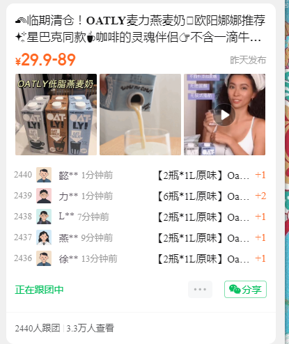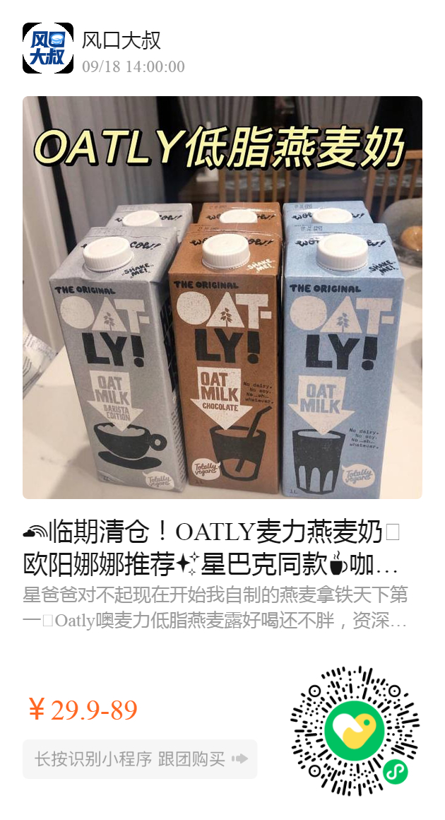 临期清仓!OATLY麦力燕麦奶🥛欧阳娜娜推荐星巴克同款️咖啡的灵魂伴侣不含一滴牛奶的植物饮料!✅原味燕麦口味 细腻丝滑 ~