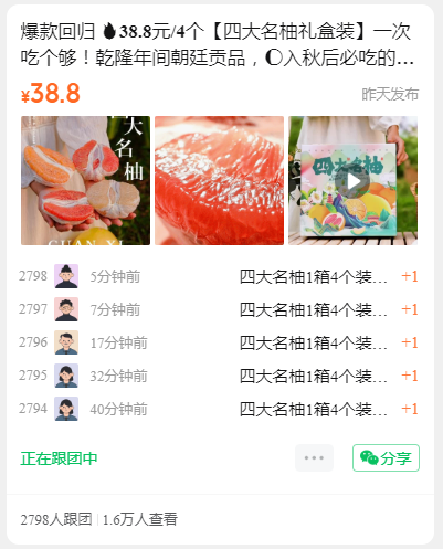 爆款回归 38.8元/4个【四大名柚礼盒装】一次吃个够!乾隆年间朝廷贡品,🌔入秋后必吃的“柚中之冠”!皮薄肉厚、口口爆汁