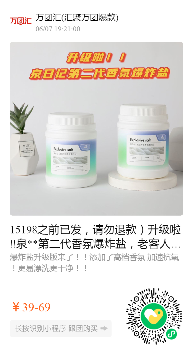 15198之前已发,请勿退款)升级啦‼️泉**第二代香氛爆炸盐,老客人疯狂回购的洗衣神器!泉**洗衣伴侣泡洗爆炸盐391桶692桶,一桶一公斤,两桶2公斤,更划算!德国技术✅过氧碳酸盐活氧还原//无需挫洗🧼泡一泡污渍去无踪❣️还原衣物艳丽清香~好用到💥爆炸,怎么好用看图!