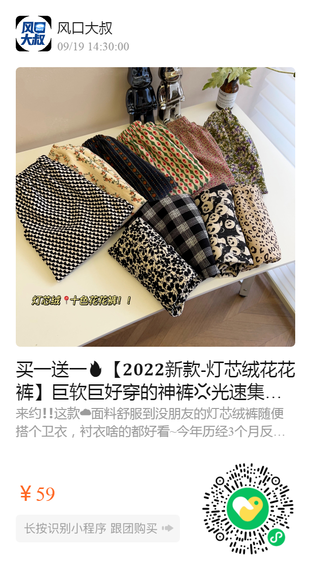 产品名称:𝟐𝟎𝟐𝟐新款-灯芯绒花花裤
