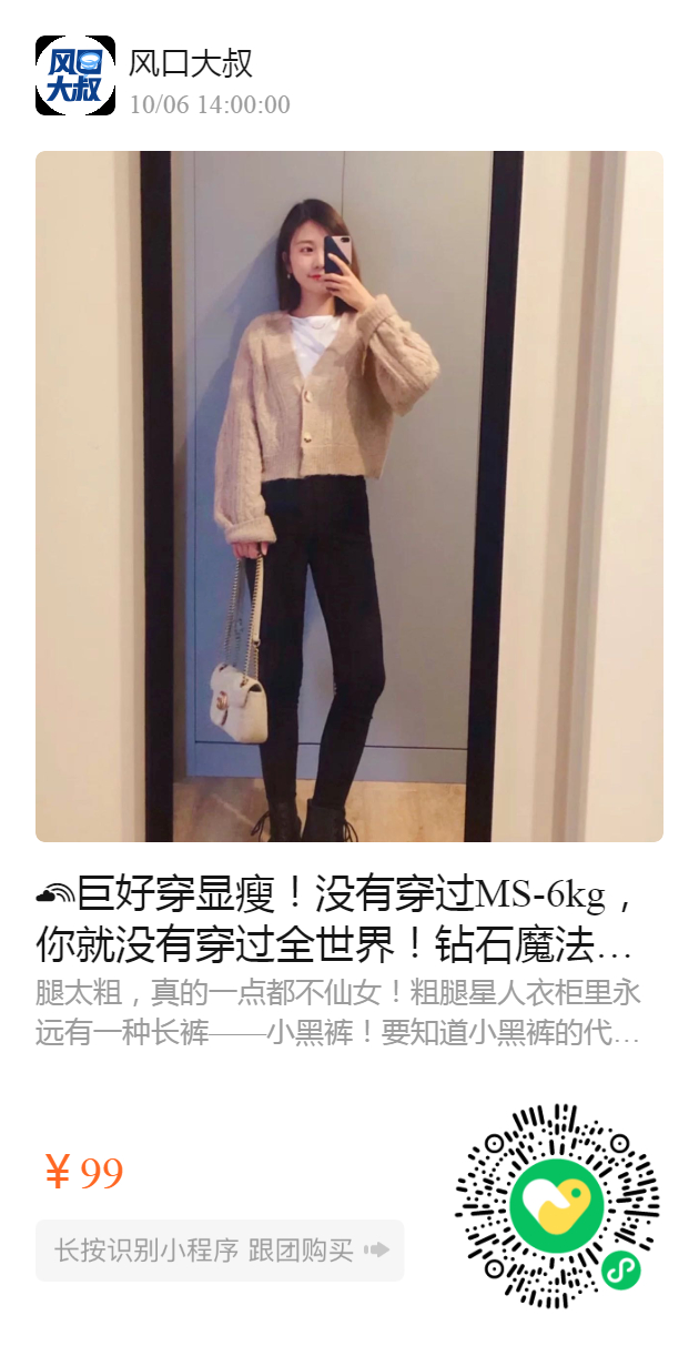 巨好穿显瘦!没有穿过MS-6kg,你就没有穿过全世界!钻石魔法小黑裤秒杀韩国小黑裤!55%棉➕15%氨纶➕30%锦纶! 弹力大,胖子也可以穿,舒服到孕妇也能穿! 穿它秒瘦6kg的感觉,可以跳舞做瑜伽,双倍弹力自由拉伸! 原价228元,清仓价99元一条! ‼️均码!90-150斤可穿!