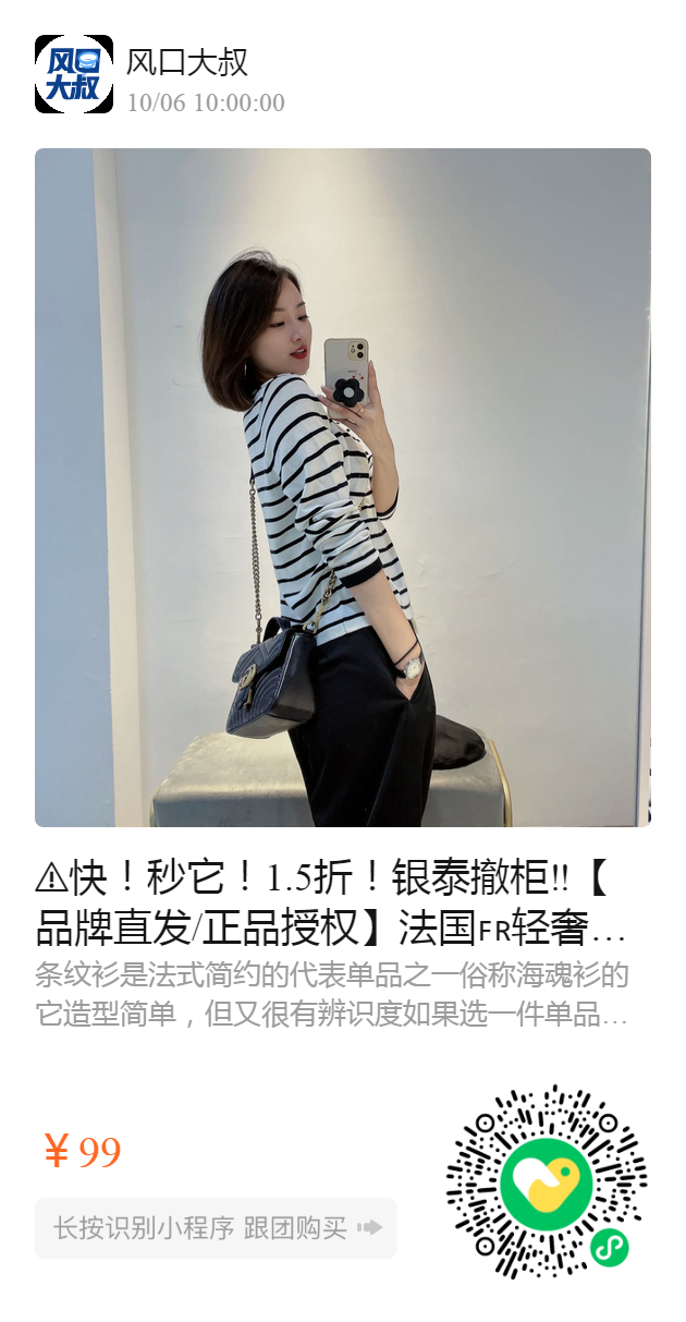 ️快!秒它!1.5折!银泰撤柜‼【品牌直发/正品授权】法国轻奢品牌Steve Sandro减龄条纹毛衣!