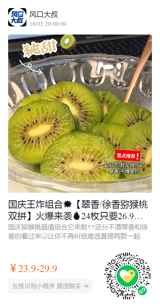 国庆王炸组合💥【翠香/徐香猕猴桃双拼】火爆来袭24枚只要26.9!!原生态 纯天然有机种植的猕猴桃🌲 翠香 徐香傻傻分不清?双拼让你不纠结,两种猕猴桃一起吃过瘾‼️ 好吃名不虚传~赶紧来试试