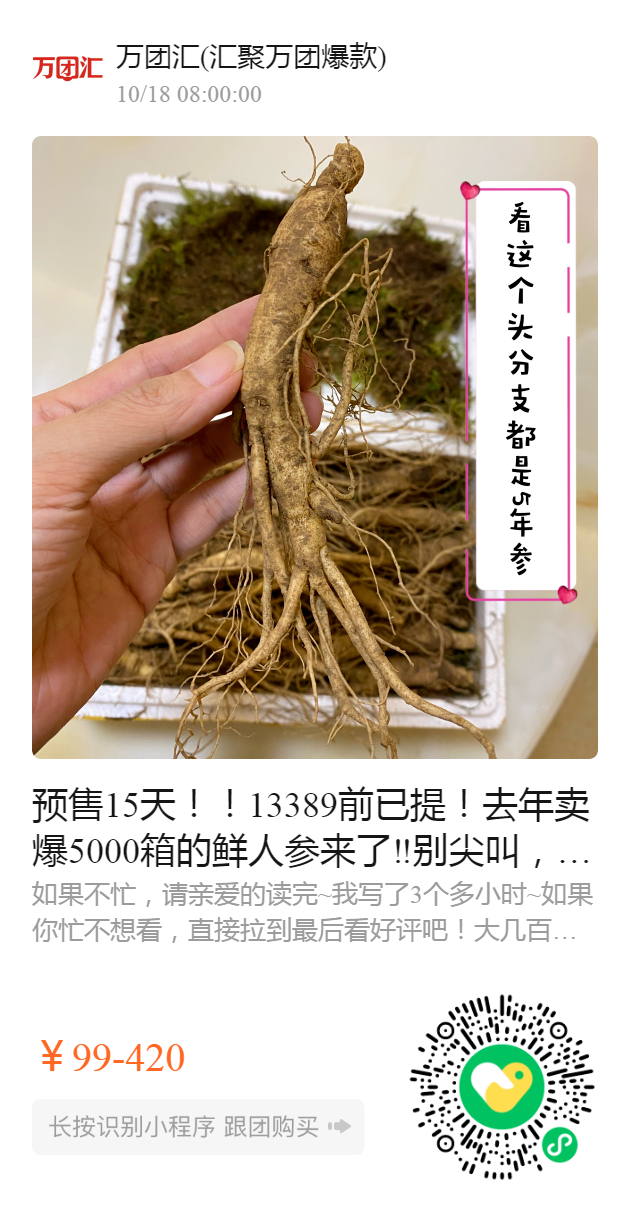预售15天!!13389前已提!去年卖爆5000箱的鲜人参来了‼️别尖叫,你没看错!长白山人参99一箱!这个价格药店一根都买不到