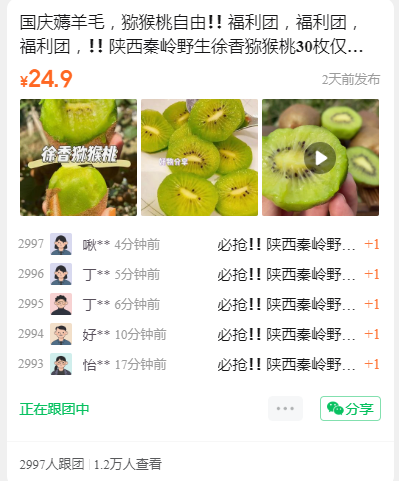 陕西秦岭野生徐香猕猴桃30枚仅需24.9