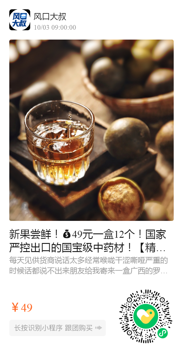 新果尝鲜!49元一盒12个!国家严控出口的国宝级中药材!【精至特优级高山黄金罗汉果】 国家地理标志产品,历朝宫廷贡品 🔺 药食同源, 300年种植历史 🔺邓紫棋、陈慧琳等众多歌星护嗓秘籍 🔺广西永福县核心高海拔产区,90天生长周期 🔺 润肺化痰,凉血润肠,秋冬居家必备