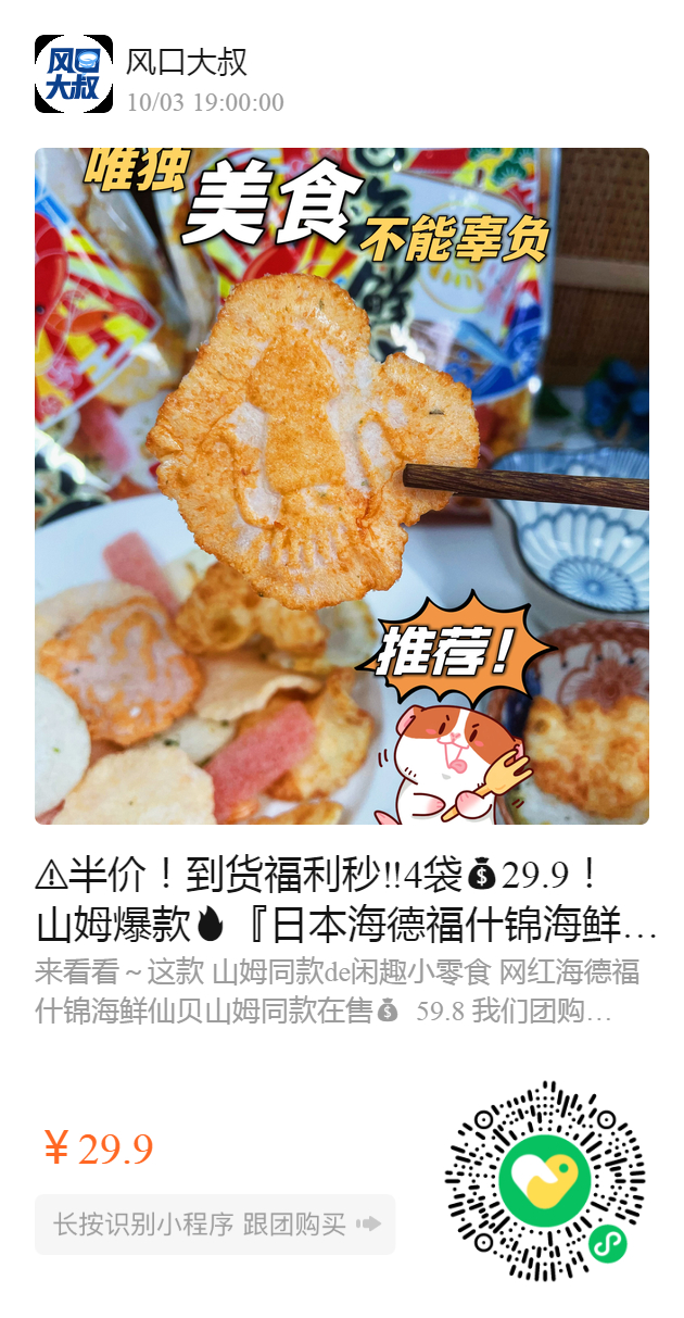 ️半价!到货福利秒‼️4袋29.9!山姆爆款『日本海德福什锦海鲜仙贝』山姆在售59.9!
