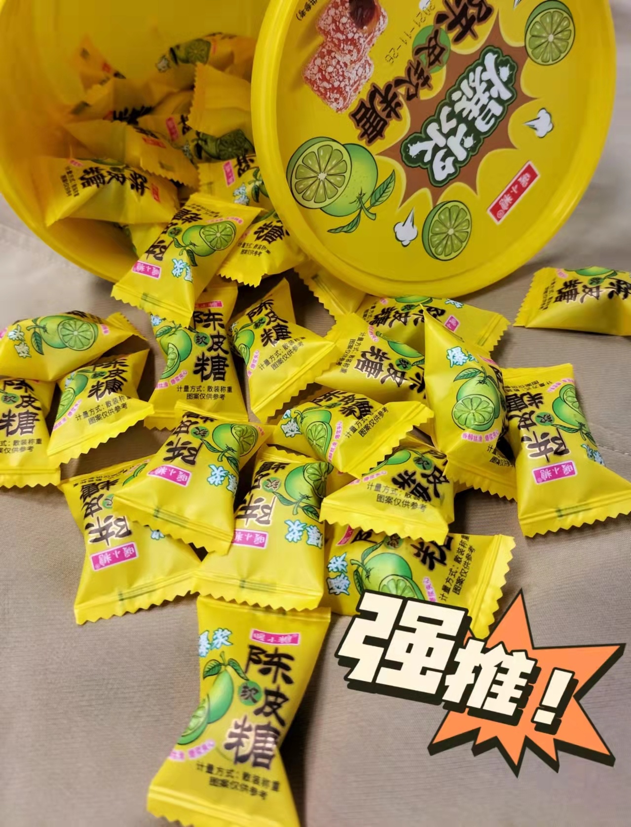 9151前已发,两大桶才19.9,爆浆陈皮软糖 ,爆浆预警啊✅ 真真真的会爆浆哦❗❗ 果香满嘴跑,酸酸甜甜的,嗦啊~超爽!!! 陈皮粒+果酱,贼有口感 ❗❗ 家人们都超爱吃,太过瘾了,简直是软糖界的“天花板” 生活有点苦,可以来颗爆浆陈皮软糖,酸中带甜,甜中带酸,浓浓的陈皮味吃着清爽解腻~
