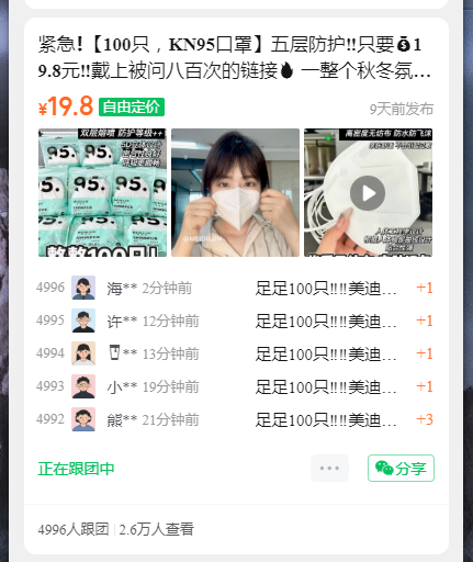 紧急❗️【100只,KN95口罩】五层防护‼️只要19.8元‼️戴上被问八百次的链接 一整个秋冬氛围感防护升级📈颜值更升级📈