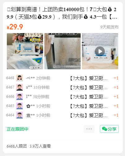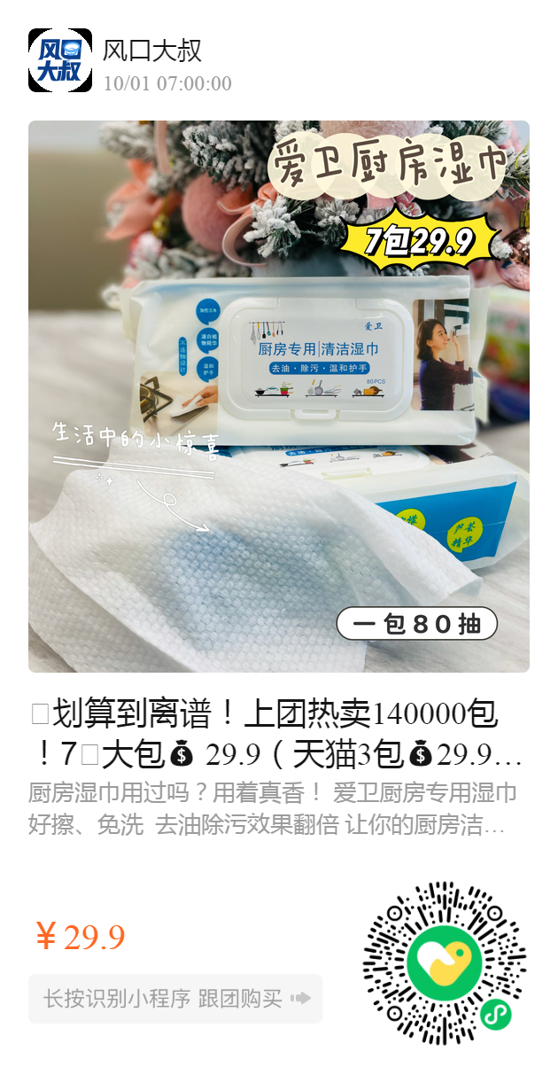 🥬划算到离谱!上团热卖140000包!️大包 29.9(天猫3包29.9),我们到手 4.3一包【爱卫厨房80抽湿巾】!天猫月销3000+,告别传统,一片轻松去油污!