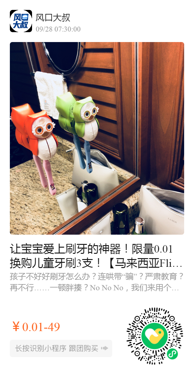 让宝宝爱上刷牙的神器!限量0.01换购儿童牙刷3支!【马来西亚Flipper猫头鹰计时沙漏⏳牙刷架】无数明星推荐,万千宝妈安利!
