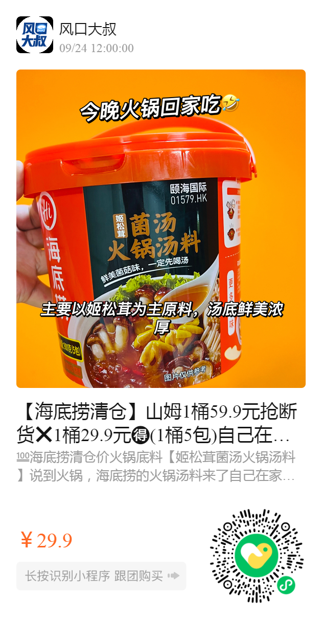 清仓【海底捞 姬松茸菌汤火锅汤料 】不管是炖什么都合适,一口喝下去足以鲜到起飞🛫️精选多种野生菌菇🍄真材实料,煲汤滋补好食材!自带鲜味,煲汤不用放味精❗这波羊毛确定不薅吗