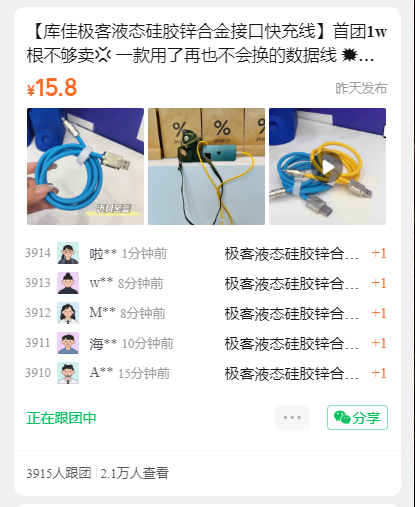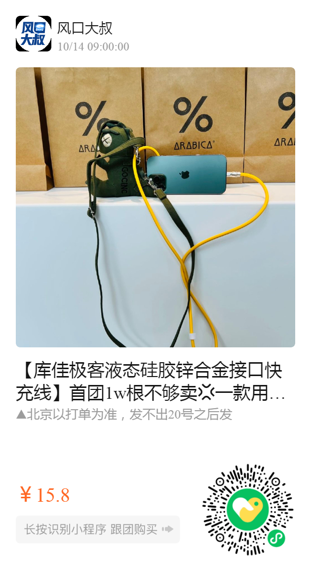 【库佳极客液态硅胶锌合金接口快充线】首团1w根不够卖 一款用了再也不会换的数据线 💥满满的科技感超级耐造比普通线粗️倍 官方价138元,团购价15.8元‼️这个价格不用考虑了,直接冲💥