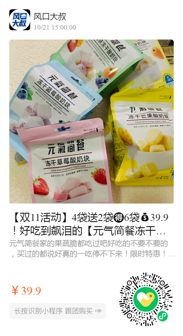 【双11活动】4袋送2袋️6袋39.9!好吃到飙泪的【元气简餐冻干酸奶块】零下30°C急速冷冻干技术,锁住新鲜和营养!