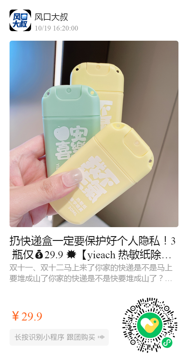 扔快递盒一定要保护好个人隐私!3 瓶仅29.9 💥【yieach 热敏纸除字喷雾30ml】无限回购️的隐私喷雾升级款️携带方便l网购福音!