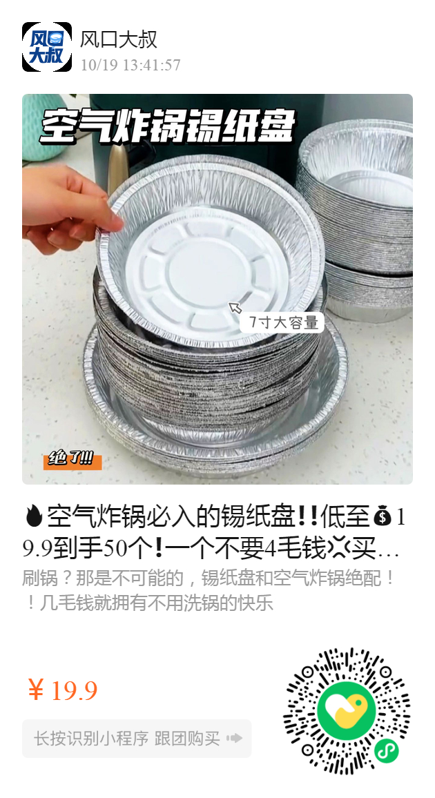 空气炸锅必入的锡纸盘❗️❗️低至19.9到手50个❗️一个不要4毛钱买一次能用一年,超划算‼️ 【空气炸锅锡纸盘】7寸大容量,不用刷锅❗️懒人必备❗️可重复使用,非一次性🉑️直接接触明火使用~ 烤箱or空气炸锅、微波炉都可以用,分分钟get夜市摊小吃‼️