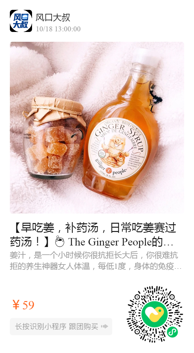 【早吃姜,补药汤,日常吃姜赛过药汤!】🍯 The Ginger People的姜汁是北美第一品牌,老爸评测推荐的唯一“姜品牌”!️兑一勺热水轻松祛寒超方便! 姜汁,是一个小时候你很抗拒 长大后,你很难抗拒的养生单品~ 新日期