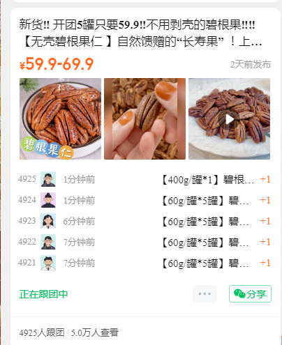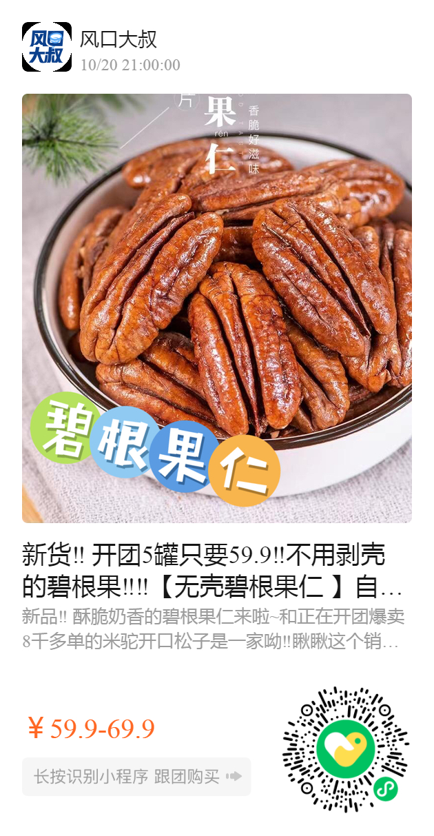 新货‼️ 开团5罐只要59.9‼️不用剥壳的碧根果‼️‼【无壳碧根果仁 】自然馈赠的“长寿果” !上品之选💥